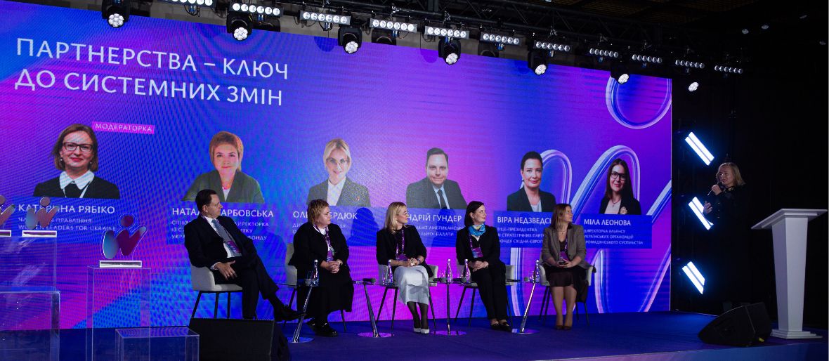 Vira joined the panel discussion with Olha Serdiuk, Director of Olena Pinchuk Foundation, Natalia Karbovska, Director of Strategic Development at Ukrainian Women’s Fund, Andrii Hundar, President of American Chamber of Commerce, and Mila Leonova, Director of Alliance of Ukrainian Civil Society Organizations – colleagues who shape new standards for community development in various sectors.